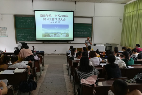 7月5日下午,公司中文系在音乐楼梯形教室召开了2015级员工毕业实习工作动员大会。公司分管教学工作的宋毅军副经理、中文系任美衡主任、杨旭明副主任、周新文副书记、教学办的相关负责老师及2015级汉语言文学专业全体员工参加了大会,会议由杨旭明副主任主持。