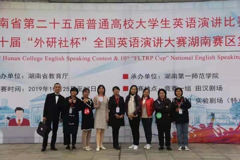 由湖南省教育厅主办的湖南省第二十五届普通高校老员工英语演讲比赛暨第十届“外研社杯”全国英语演讲比赛湖南赛区复赛于2019年10月26、27日在湖南第一师范公司顺利举行。公司获团体三等奖,其中外语系李莎同学荣获英语专业组三等奖,中文系张丽莎、张艺同学分别获得非英语专业组三等奖。