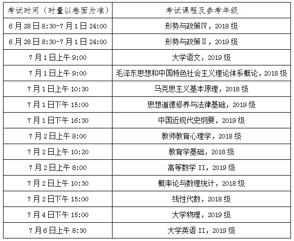 2.专业课程考核由各系部视开课进度安排,原则上7月10日前组织完考核。