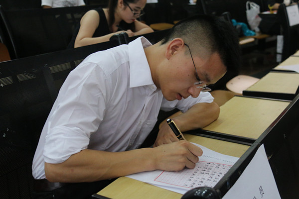 图为选手钢笔字比赛