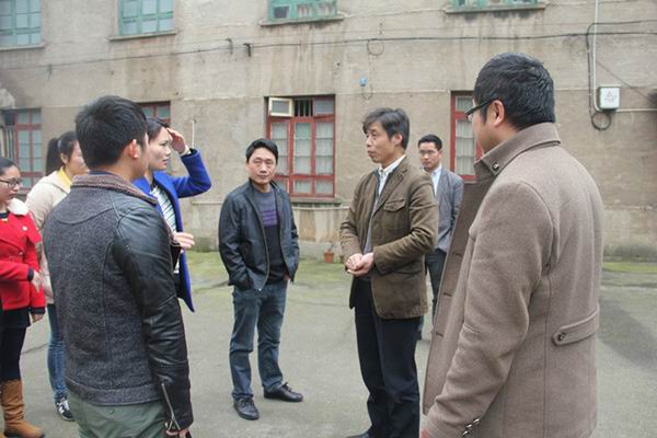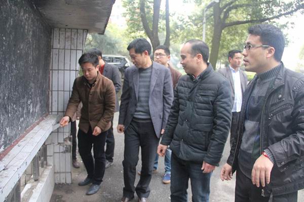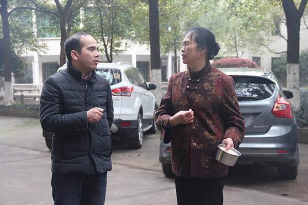 副经理梁文明在教师家属区向退休老教师宣讲清理“牛皮癣”工作