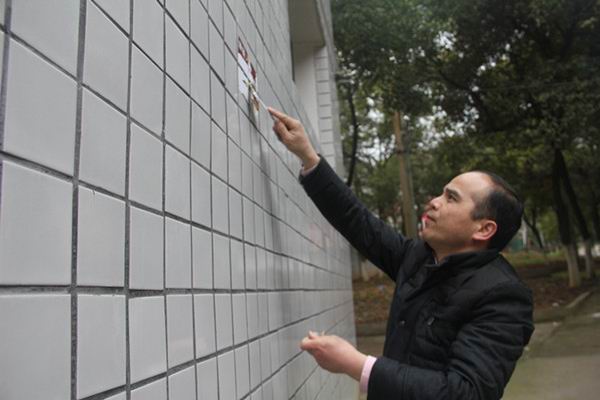 公司党总支书记高峰在男生大院清理“牛皮癣”