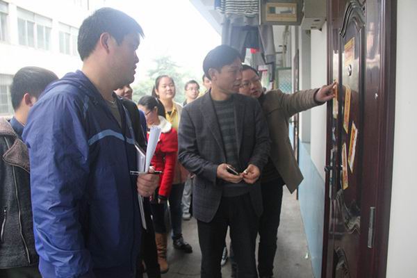 经理邓双喜在男生大院检查“牛皮癣”清理情况