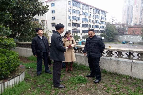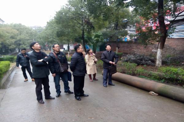 皮修平董事长一行检查教学楼墙面的“牛皮癣”