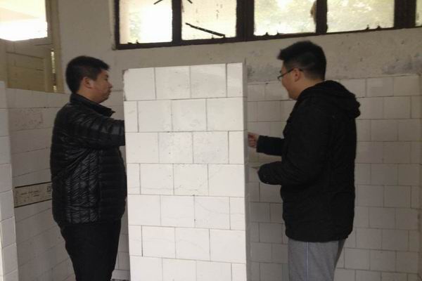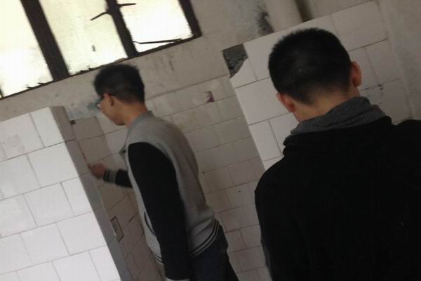 经管系团总支党员先锋队队员清理综合楼男厕“牛皮癣”现场