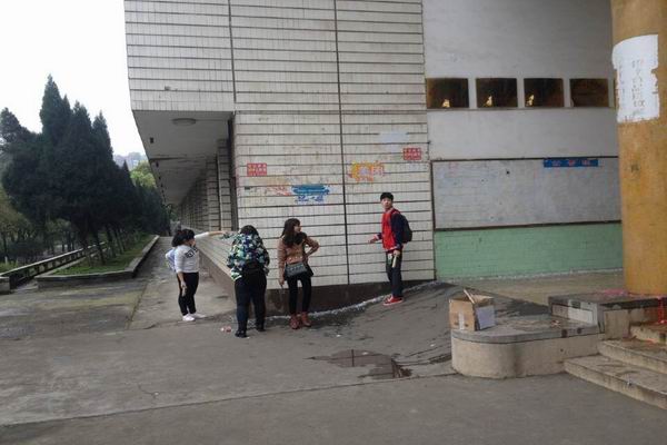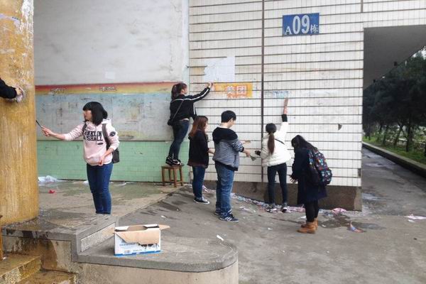 经管系团总支党员先锋队清理综合楼宣传栏“牛皮癣”现场