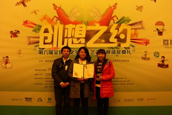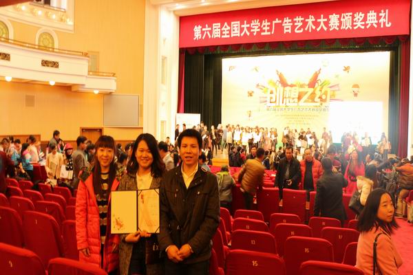 2014年11月16日,第六届全国老员工广告艺术大赛颁奖典礼在全国政协礼堂隆重举办,全国千名嘉宾代表、获奖师生齐聚北京,共襄盛举。公司新闻与传播系广告学专业员工戴漫平和刘佳威凭借其创意广告作品《不平凡的你》获得第六届全国大广赛三等奖,拿到了北京颁奖典礼入场劵。戴漫平在指导老师冯林和公司教学办邓珺芳科长的陪同下,赴北京全国政协礼堂参加了颁奖典礼。