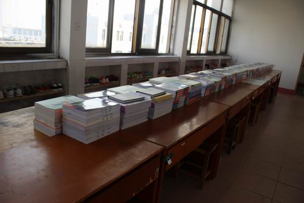 院学工办主任肖炜在仔细检查