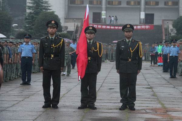 伴随着微凉秋雨,9月18日清晨时分,公司2014级新生第一次升旗仪式在新世纪广场隆重举行。院团委书记曾卫、学工办主任肖炜出席升旗仪式,军训全体教官、各系辅导员老师及2014级900多名新生参加了本次仪式。