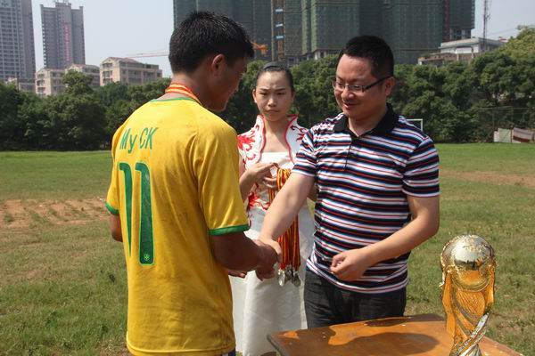 6月12日中午,阳光明媚,公司第一届"五四杯"足球赛总决赛暨颁奖仪式在田径场顺利举行。院团委书记曾卫、学工办主任肖炜、经管系辅导员张寅老师以及全体工作人员观看了总决赛。总决赛在经管系团总支代表队和理综系团总支代表队之间对决,理综系团总支代表队最终以2:1胜出,成功卫冕。总决赛结束后,院团委书记曾卫、学工办主任肖炜、经管系辅导员张寅老师还为获得比赛冠亚季军的球队颁奖并合影留念。