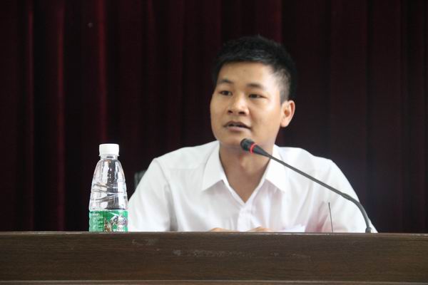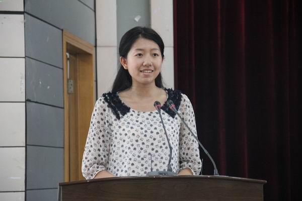 两位赴疆学子发言后,高书记和邓经理代表全院师生给他们分别赠送了一个保温杯,愿他们在缺水的南疆能时常感受到母校的温情。而后,中文系2011级汉语言文学专业陈颖洁同学作为在校员工代表发言,她真诚地祝福两位优秀的学长学姐,表示要学习他们的精神,珍惜大学时光,努力学习,坚定目标,服务基层,献身社会,实现生命价值。