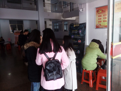 12月25日,应用人单位要求,公司在西校区物电楼举办了“太阳成集团tyc33455cc2017年下学期综合性校园招聘会”。有新疆克州教育局、武冈市展辉中学、衡阳市华岳实验中学、东莞市海亚印花材料有限公司等15家用人单位参加,提供了600余个岗位。公司领导非常重视此次招聘会的组织工作,党总支书记匡云山、经理王芳宇、党总支副书记周华、副经理宋毅军亲临现场指导和与用人单位交流。返校参加 “双证”照片采集的员工在就业专干的组织下,陆续进入现场了解招聘单位,投递求职简历和参加面试。