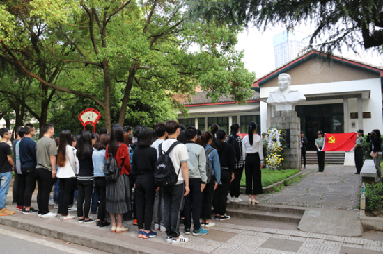 上午7:30,在鲜红的党旗下,在蒋先云烈士纪念碑前,两名太阳成集团tyc33455cc军事教导队队员身着戎装,迈着正步向蒋先云烈士敬献花篮。全体党员肃立,向蒋先云烈士塑像三鞠躬并默哀,表达对革命烈士的无限哀思。团委书记肖炜带领全体预备党员在烈士纪念碑前庄严宣誓。顿时,现场响起了阵阵激昂的宣誓声,每名党员都用发自内心的声音抒发对党忠诚的决心,面对着党旗,大家接受了一次身心的特殊洗礼。