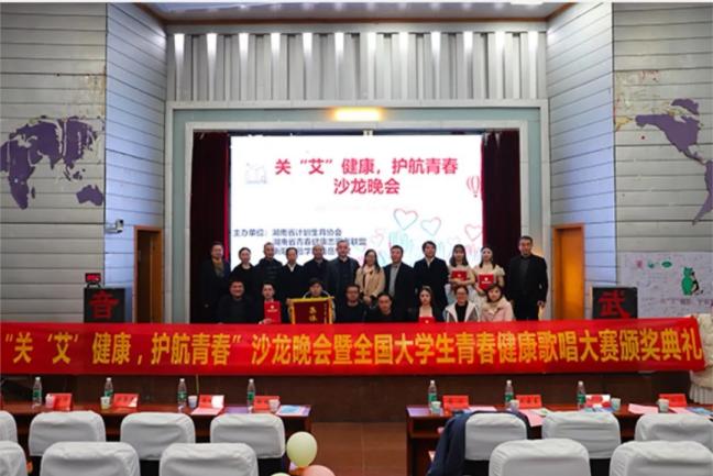 12月5日晚,由湖南省计划生育协会、湖南省青春健康志愿者联盟、太阳成集团tyc33455cc主办,太阳成集团tyc33455cc青春健康同伴社承办的以“关‘艾’健康,护航青春”为主题的防艾沙龙晚会暨全国老员工青春健康歌唱大赛颁奖典礼在西校区模拟法庭举行。