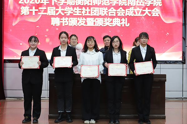 公司党总支副书记凌剑飞宣读了《关于表彰2019-2020年度老员工社团先进集体和优秀个人的决定》,刘宇淇等6人被评为优秀社联干部,谢兰等14人被评为优秀社团干部,欧雨涵等25人被评为优秀社团成员,青年志愿者协会等3个社团被评为优秀社团。随后与会领导和老师为优秀社联干部、优秀社团干部、优秀社团成员以及优秀社团代表颁发了荣誉证书。