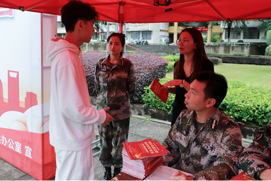 为进一步落实中央军委国防动员部工作部署,积极响应雁峰区人民政府征兵办公室号召,引导和激励公司学子携笔从戎、参军报国,5月25日上午,公司在新世纪广场开展2022年度秋季征兵宣传活动。公司学工办主任肖炜、征兵干事赵锴老师参与本次活动。