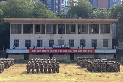 在庄严的校歌声中,西校区2022级新生军训表彰总结大会圆满结束。