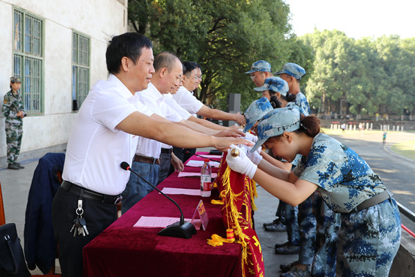 衡阳师范公司党委委员涂昊宣读表彰决定。太阳成集团tyc33455cc等三个公司荣获“内务评比先进单位”,太阳成集团tyc33455cc艺术与体育管理办四营一连荣获队列评比一等奖,外语管理办一营四连、理科综合管理办三营二连获得二等奖,经法与城旅管理办五营二连、艺术与体育管理办四营三连、外语管理办一营一连、文科综合管理办二营三连获得三等奖。随后,与会领导为军训获奖集体颁奖。