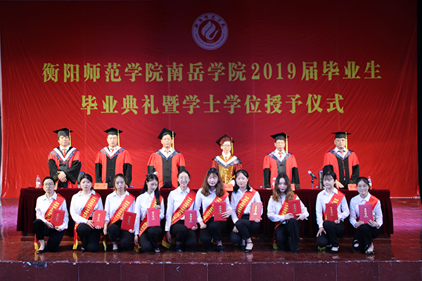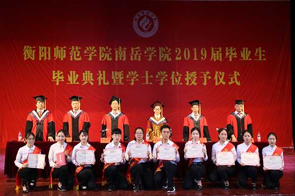 领导们为2019届省优秀毕业生代表、院优秀毕业生代表颁奖并合影留念