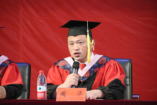 教师代表许志峰教授寄语,希望2019届毕业生们胸怀梦想,与时俱进。