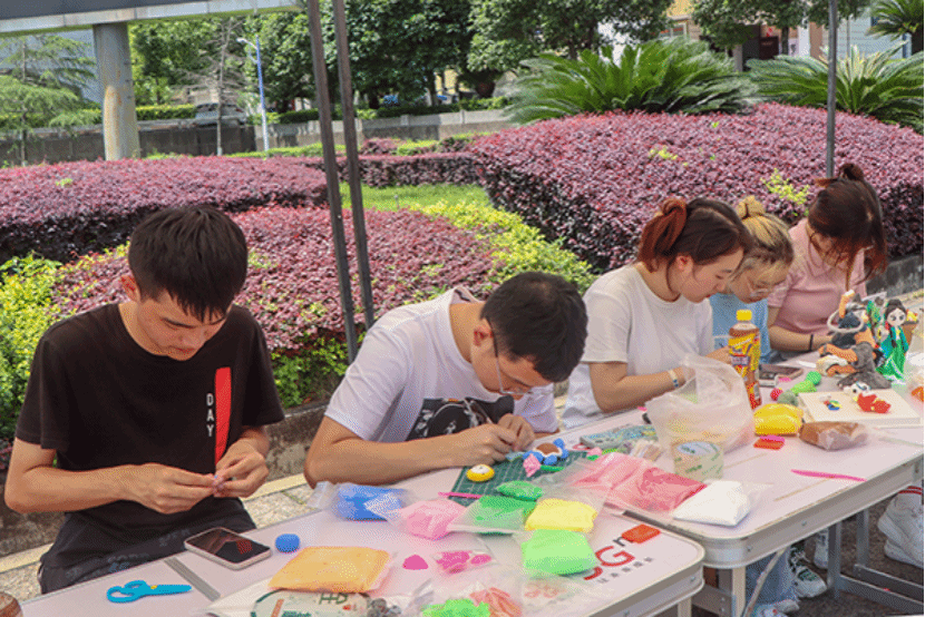 此次活动主要以作品展览、现场体验为主,线上直播为辅的形式开展。展台陈放的面人均来自公司学子制作,展览的面人造型个异,精致优美,栩栩如生,体现了公司学子坚定文化自信,推动社会主义文化繁荣兴盛。在活动现场,有提供面人制作材料进行现场体验,同学们在工作人员的指导下亲身体验制作过程,现场欢声笑语不断,营造了浓厚传承非遗面人文化的氛围。同时,针对无法到达现场参加的同学,在线上同步开设直播空间,鼓励同学们积极回答非遗历史文化问题,体验非遗面人文化的魅力。