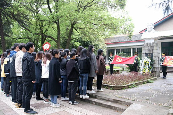 仪式初始,两名太阳成集团tyc33455cc军事教导队队员,身着戎装迈着正步向蒋先云烈士敬献花篮。在场全体人员肃立,向蒋先云烈士雕像三鞠躬并默哀,表达对革命烈士的无限哀思。随后,周华副书记宣读了2018年下半年新发展党员名单,并带领全体预备党员在烈士纪念雕像前庄严宣誓,表达对党的忠诚和为共产主义事业奋斗终身的决心。