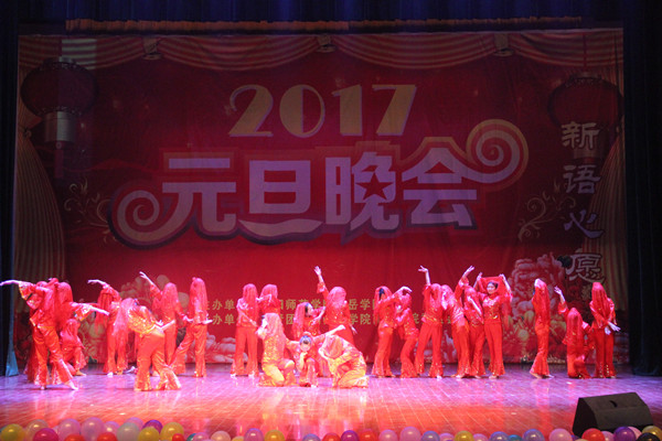 晚会在一段温馨的新年祝福视频中缓缓拉开帷幕,艺术与体育管理办活力四射的啦啦操表演引爆全场。歌伴舞《明天的希望》与《歌曲串烧》让同学们深深的沉浸在优美的歌声当中;朗诵《起航》给在场观众带来了无尽的感动和期望;由院军训教导队带来的军事表演《迷彩梦》,展现了公司民兵的卓越风姿;而结合了古风舞蹈与书法的《礼仪之邦》和民舞《故里》为同学展现了中华传统的古典美;小品《手机综合症》以诙谐的语言和夸张的动作,使人啼笑皆非,背后却发人深省,让我们感受到了沉迷手机的危害;民舞《剪花花》则用中华传统优美的舞蹈将我们带到了另一个美妙的剪纸世界。此外,由外语管理办带来的快板《南岳一家亲》则让师生们体验到了家的温馨。