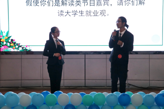 决赛共分为自我介绍、即兴评述、模拟主持、才艺展示四个环节。参赛选手分别用自己独特的方式进行自我介绍,展现个人风采,令评委和观众对他们有了基本的了解。挑战思维敏锐度的即兴评述、两两默契搭配的模拟主持、丰富多彩的才艺展示,比赛有条不紊的推进着。选手们良好的语言素养,深厚的知识底蕴,优秀的临场应变和即兴发挥能力与各具特色的才艺表演令在场观众赞叹,他们共同为观众奉上了一场精彩的视听盛宴。