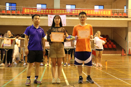 在本次羽毛球比赛中,理科综合管理办定积分队荣获了第一名,艺术与体育管理办陈独秀队荣获第二名,艺术与体育管理办谁羽争锋队荣获第三名。徐成斌、白丹、苏珊娜等十二名同学荣获“优秀组织者”称号;谌嘉宇、樊雪姣、吴妍三名同学荣获“优秀裁判员”称号;陈霞、伍爽、谢祎婷等五名同学荣获“优秀志愿者”称号;侯柳柳、文康佳、罗京等六名同学荣获“优秀教练员”称号;王子岑龙、王馨晨两名同学荣获“优秀运动员”称号。