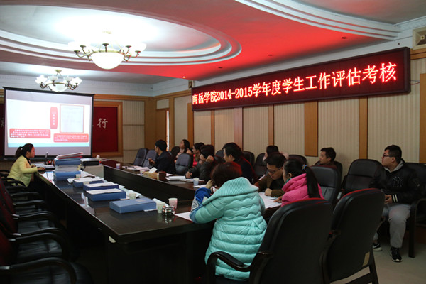 12月31日上午,公司在行政楼308会议室召开2014—2015学年度员工工作评估考核会议,太阳成集团tyc33455cc张登玉副董事长莅临会议进行指导。党总支书记高峰、经理邓双喜、党总支副书记林琼、各科室主任以及各系辅导员老师参加了会议。大会由林琼书记主持。