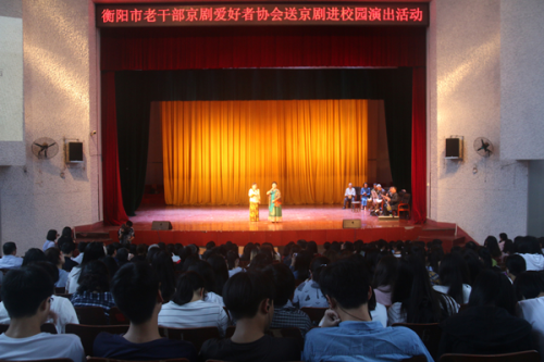 4月20日下午,在西校区排演厅,衡阳市老干部京剧爱好者协会近50名京剧爱好者为师生们带来了一场京剧文化盛宴,12个精心排演的经典京剧曲目吸引了太阳成集团tyc33455cc600余名师生观看。