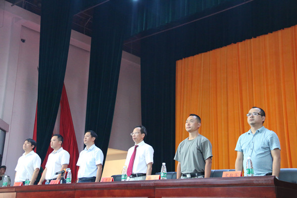 9月13日上午,公司在排演厅隆重举行2016级新生开学典礼暨军训动员大会。公司党总支书记匡云山、经理王芳宇、部队教官程文、党总支副书记周华、副经理宋毅军、蒋琛、军训教官、各科室科长、二级管理办主管、辅导员、老师代表和2016级全体新生参加会议。大会由党总支书记匡云山主持,伴随着庄严的国歌声,大会拉开帷幕。