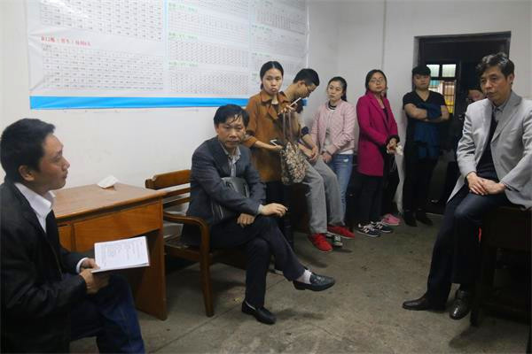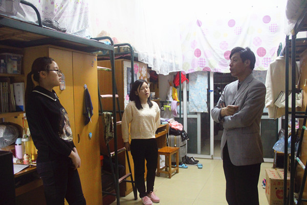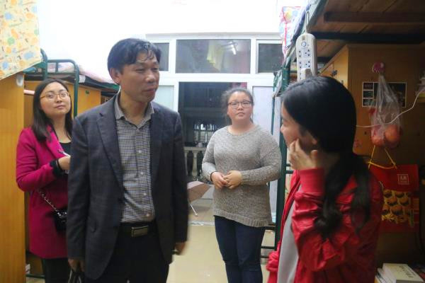 4月12号晚公司领导和全体辅导员开展零点行动至凌晨3点后,4月13日晚21点,公司领导和全体辅导员继续在男生大院宿舍管理中心集合,公司党总支书记高峰、经理邓双喜、党总支副书记林琼、副经理杨兴华等领导带领各系辅导员老师,分组夜访员工宿舍,展开零点专项督查活动。