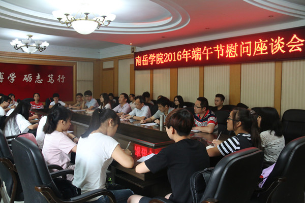 6月7日下午,公司2016年端午节慰问座谈会在行政楼308会议室举行。公司党总支书记匡云山、经理王芳宇、副经理杨兴华、学工办主任肖炜出席了本次大会,各系团总支书记及各系经济困难家庭员工代表参与了此次座谈会。座谈会由党总支书记匡云山主持。