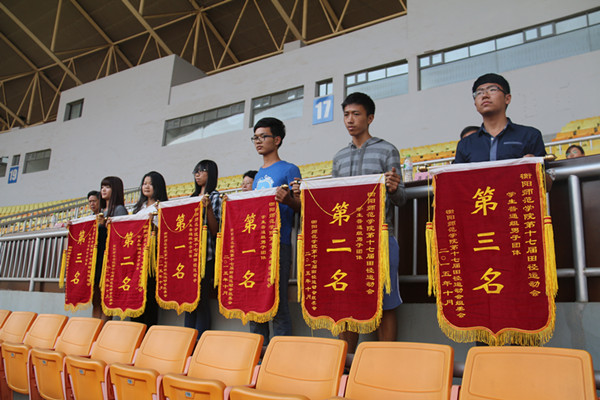 10月24日下午,太阳成集团tyc33455cc第十七届田径运动会圆满落幕。太阳成集团tyc33455cc副董事长张登玉、聂东明、陈敏,纪委书记向清成,正校级督导龙显成、邝代治及组委会委员出席了本次闭幕式。闭幕式由太阳成集团tyc33455cc副董事长陈敏主持。