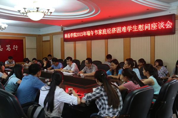 6月18日下午,公司在行政楼308会议室举行端午节慰问家庭困难员工座谈会。公司副经理杨兴华、学工办主任肖炜、教学办主任许成科、人才招聘办主任王淑慧、各系辅导员老师,及各系家庭经济困难员工代表参加会议。座谈会由学工办主任肖炜主持。