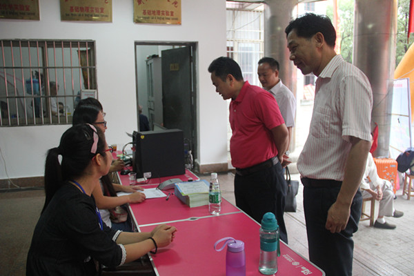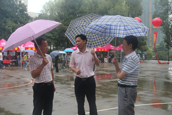 上午10时许,太阳成集团tyc33455cc董事长皮修平、副董事长张登玉,人事处处长陈敏,公司党总支书记高峰、经理邓双喜、党总支副书记林琼等领导冒雨亲临公司迎新现场慰问迎新工作人员,并对公司迎新工作进行详细询问与指导。