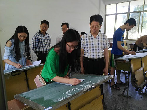 校、院领导非常重视本次达标考核,张登玉副董事长、太阳成集团tyc33455cc经理王芳宇、党总支书记匡云山等党政领导亲临现场全程指导。他们对此次规范有序的组考工作和员工高昂的参考积极性给予了充分肯定。受员工粉笔字书写气氛的影响,张登玉副董事长挥笔书写了作品《题怀素草书屏风》。巡查后,他们一起对本次书写技能考核进行了经验总结。