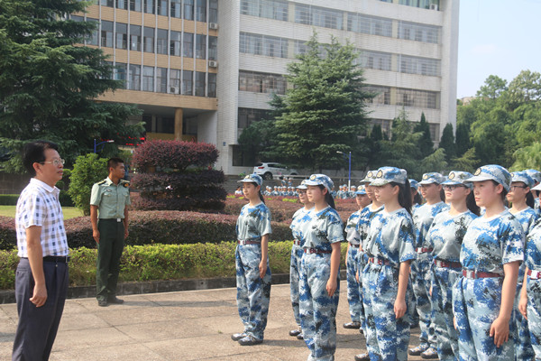 在军训场地,张副董事长向军训教官致以亲切的慰问,对他们的辛勤工作表示感谢,并对参训学员们高昂的军训热情、丰富的军训内容表示肯定。他指出军训是新生入学最重要的环节,是大学的第一课,对整个大学四年起到了至关重要的作用。他对全体新生提出了四点希望和要求:第一,通过军训,锻炼意志力;第二,培养吃苦耐劳的精神;第三,增进同学间的友谊,培养集体主义精神;第四,培养严谨务实的工作学习态度。最后张副董事长希望同学们发扬不怕苦不怕累的精神并预祝此次军训取得圆满成功,同时祝愿同学们学业有成、事事如意。